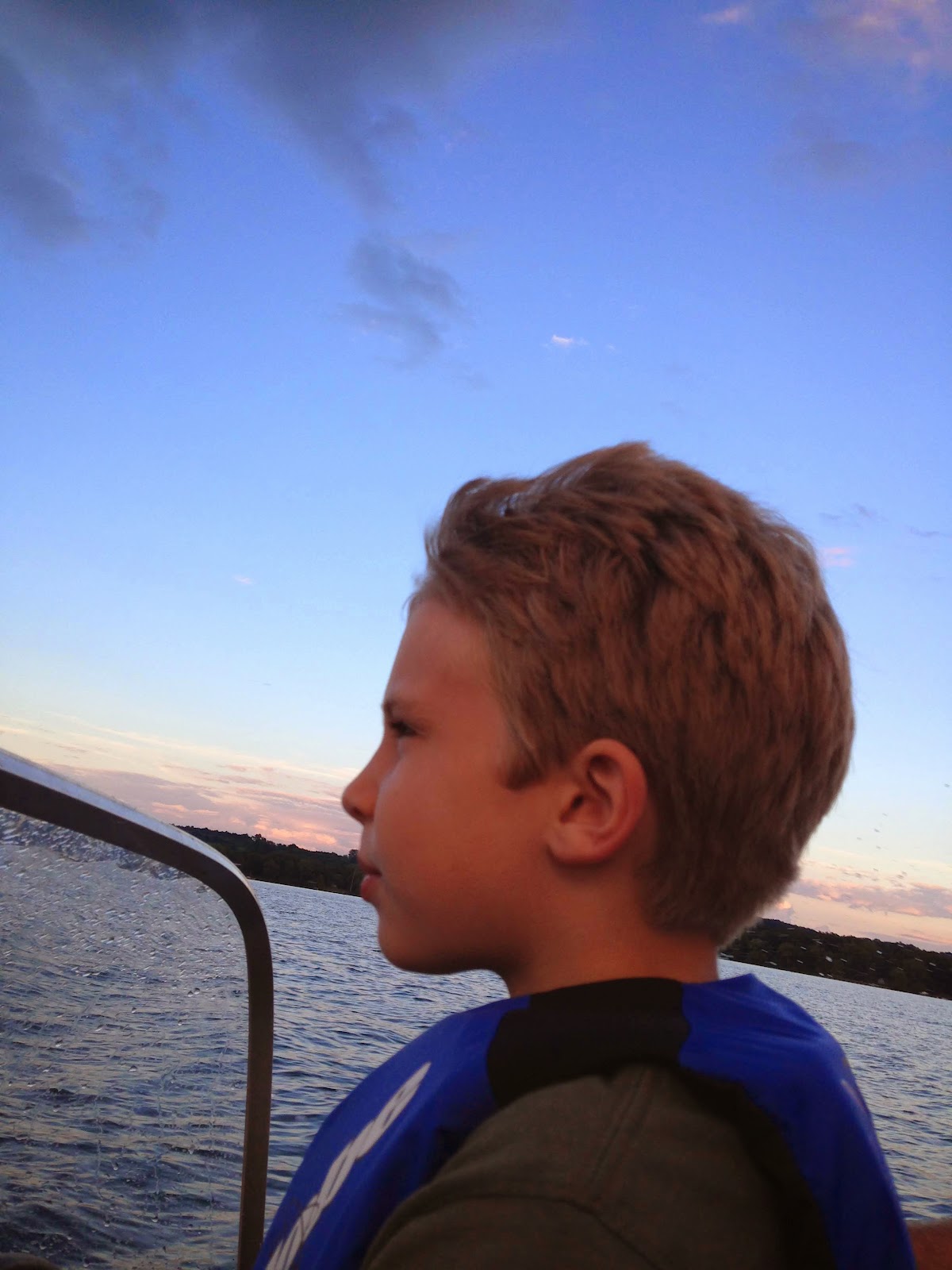 The evening brought rowboat rides and motorboat rides and a strange quiet, with our first dinner on our own since we arrived (see, I told you it's been a very full visit!). We almost didn't know what to do with ourselves. We landed on letting the kids watch some TV on the Kindle (first TV in a week!) and then Randy and Amy stopped by for a chat and the evening ended up being quiet lovely, with the kids getting to bed just as late as usual. Phew.