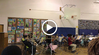 The boy's turn. How is this little one so grown up? The only 4th grade trombone in the orchestra. So poised and serious himself...