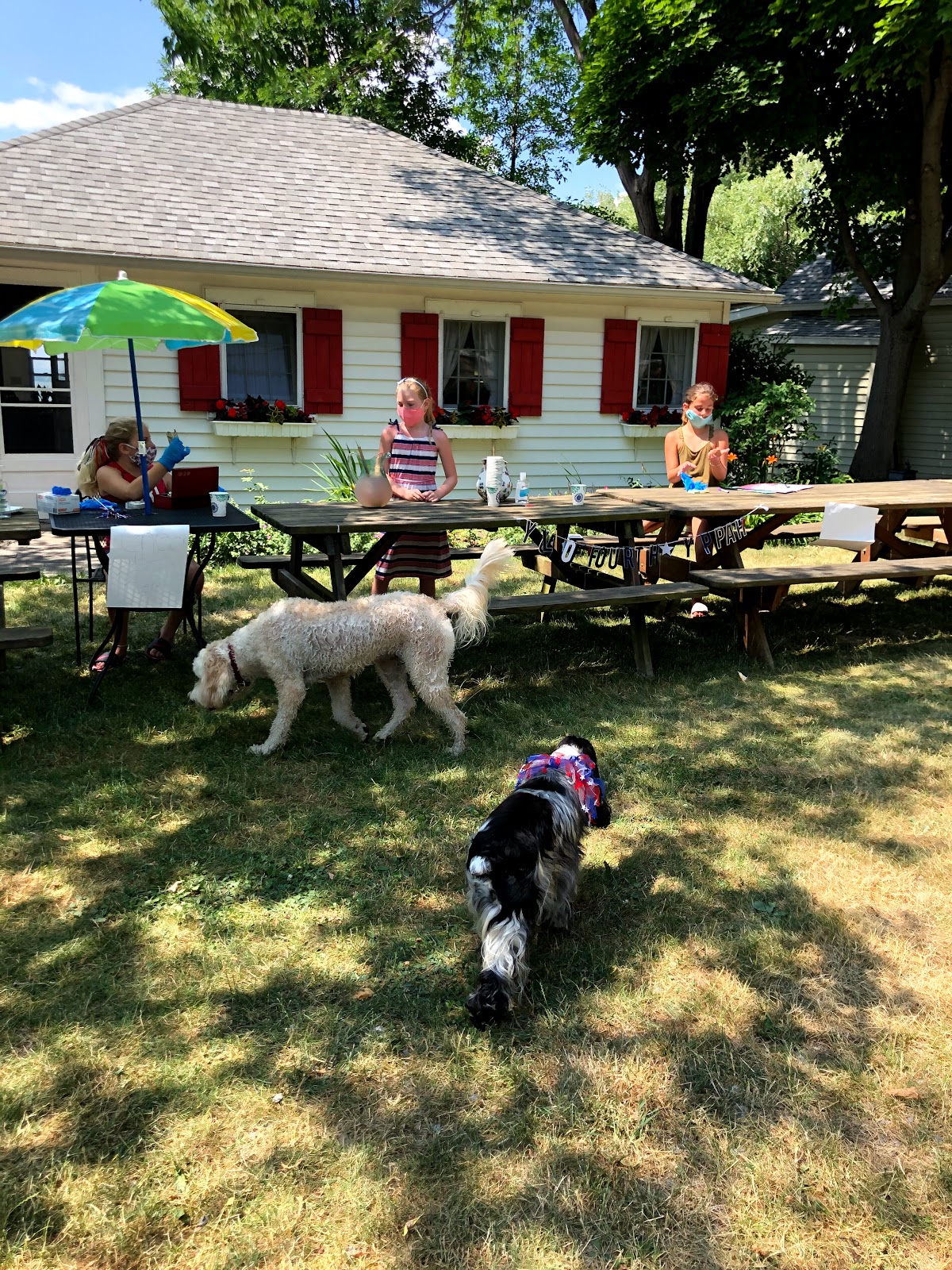 Here we are at our second major holiday to be affected by this disease. I am thankful for the warm weather and sunshine which lets a lot of our Farley's traditions continue in an almost normal fashion. Kids are swimming and playing in the park together, adults are standing around or sitting by the water or gathering around campfires in just about the same way we always have. Farley's life was made for this. But- there was no Point parade this year, or gathering to sing the National Anthem. Kids are asked to play outdoors only and not enter each other's cottages. The girls wore masks at their lemonade stand, which was rather sparsely attended. Our family dinner tonight will be small as Emily is not flying up from Atlanta, Jamie and Casie are not flying in from San Francisco, and Randy and his family are staying in Union Springs till the Point clears out a bit.